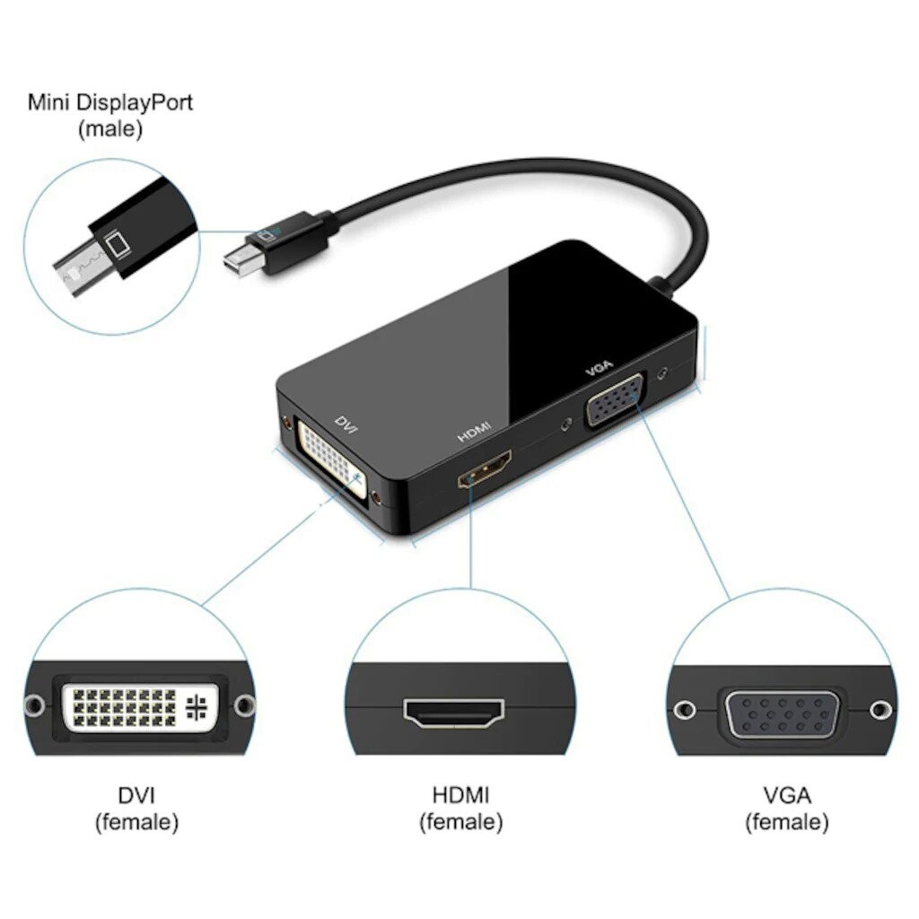 Ürün Mini Displayport girişinizi HDMI-DVI ve VGA a çevirir.